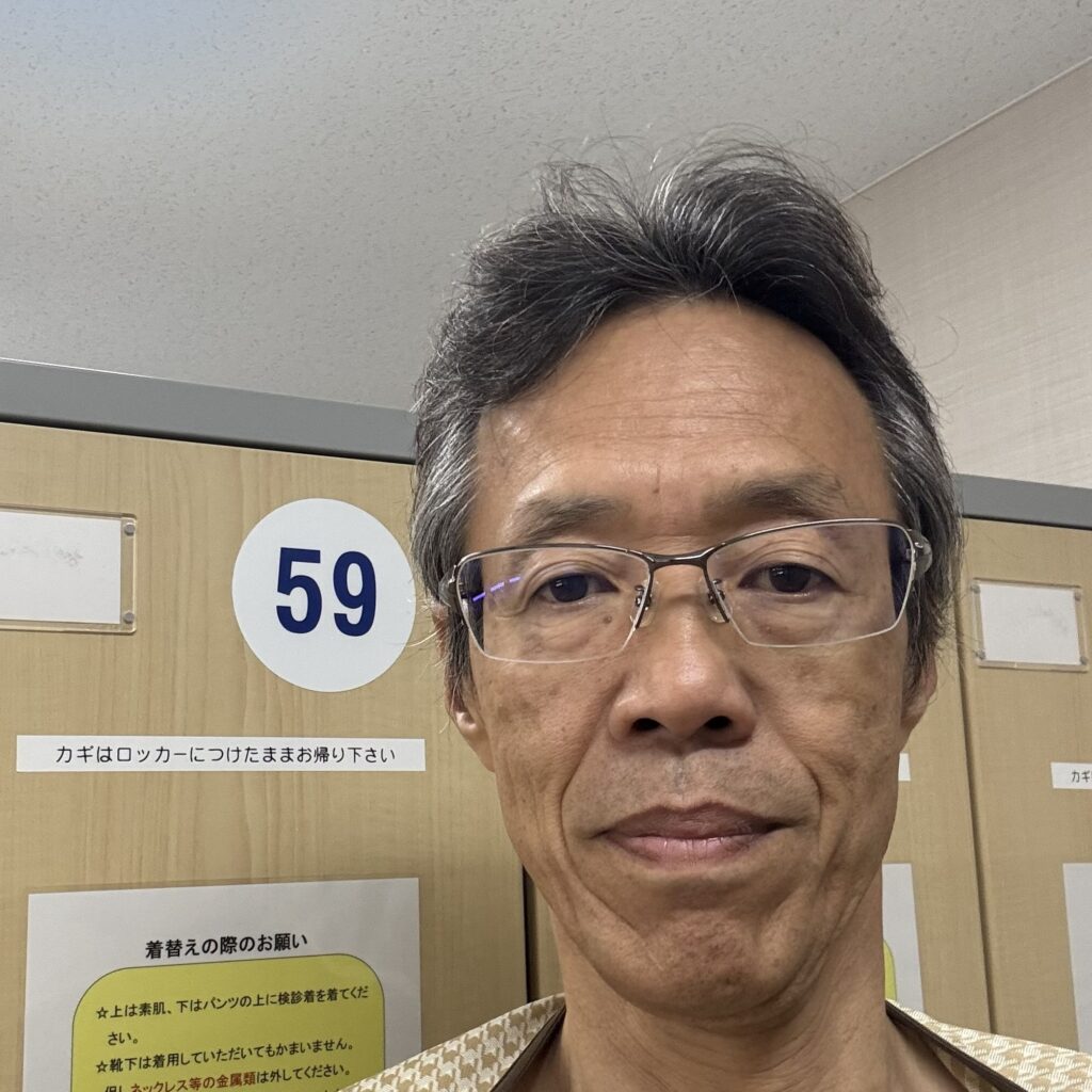 下の写真は、本日の人間ドックが終わってから撮った自撮りです。